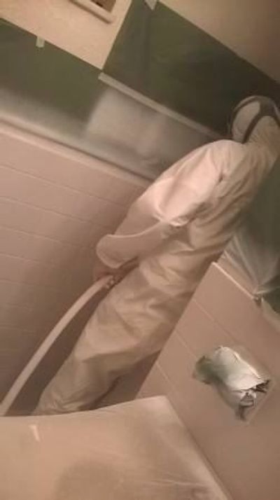 7. The tub is completely masked off from adjacent surfaces with industrial masking papers and tarps.